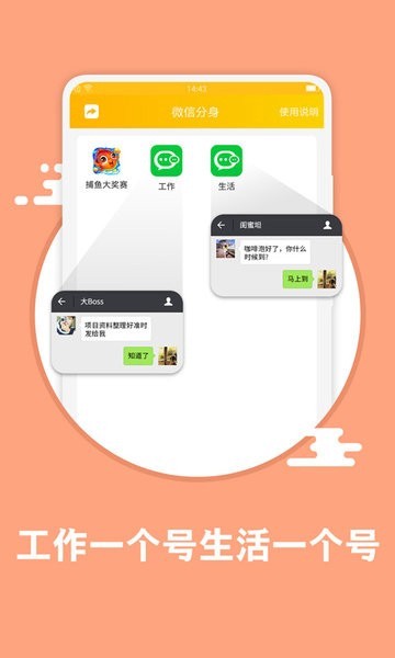 2、支持应用分身,多个账号同时在线;微信多开数量不限,互相独立不影响。