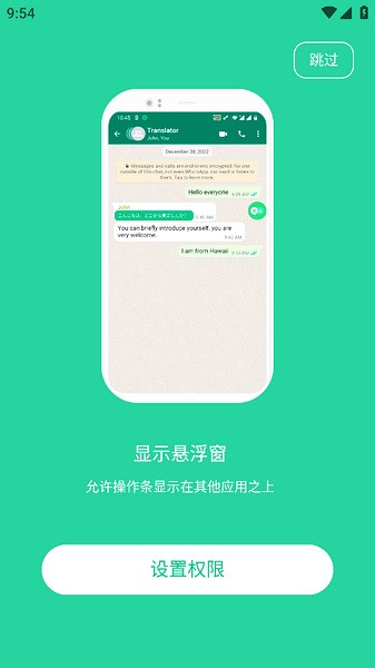 浮动翻译:将浮动球拖动到您要翻译的位置,立即将其翻译成您的语言。点击全屏翻译悬浮球,为您翻译整个屏幕。