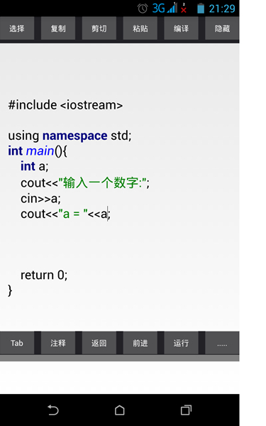 这款C语言编译器手机版是一个超级方便的工具,让我们可以直接在手机上编写、编译并运行C语言代码。界面设计得很清爽,功能一目了然,操作起来也很直观。它支持基本的编辑功能,比如复制、粘贴,还有常用的Tab和注释功能。最牛的是,我们可以直接把写好的程序在手机上编译运行,完全不需要其他插件,这对于程序员来说简直就是救星。
