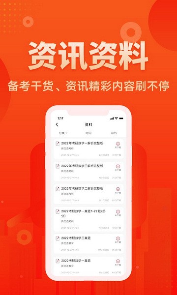新文道教育app是一款专注于考研培训教育的软件,对于目前正在考研的用户们来说一定是个不可多得的宝藏软件之一,平台内为用户们提供了非常丰富的考研学习资料,并且涵盖了所有科目,方便大家可以随时随地进行查阅和浏览,并且其中还有非常多专业的名师在线为大家开设直播教学课程,大家可以在线与老师进行沟通,有任何问题都可以直接进行提问,提高学习效率。