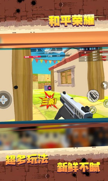 和平荣耀免广告版是一款超好玩的吃鸡枪战手游,画面结合了像素风格和3D技术,既经典又有立体感。游戏里有各种武器装备,比如机枪、霰弹枪、突击步枪等,还能开载具耍酷。多人模式特别有意思,可以和全国各地的玩家一起打枪,互相配合团灭对手。