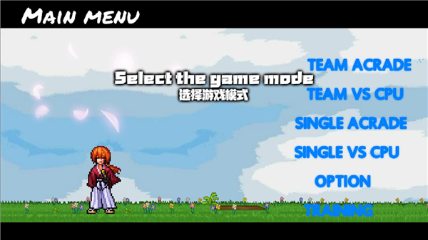 1、在本站下载打开游戏后,点击屏幕即可进入,在这里共有6大选项,大家不用担心都是英文看不懂,你只需要点击选项,下方即可出现中文说明,前两个“TEAM”与后两个“SINGLE”的区别是“TEAM”需要玩家选择3名不同的角色,并自由调整角色出场顺序,而“SINGLE”只需要玩家选择一个角色就可以了。这里点击第三个单人闯关模式,再次点击确认。