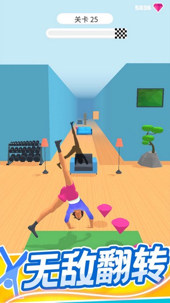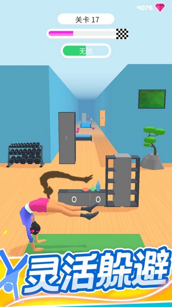 1.画面简单清爽。与其他跑酷手机游戏背景设置在空白区域不同,场景设置在更适合瑜伽的房间里。