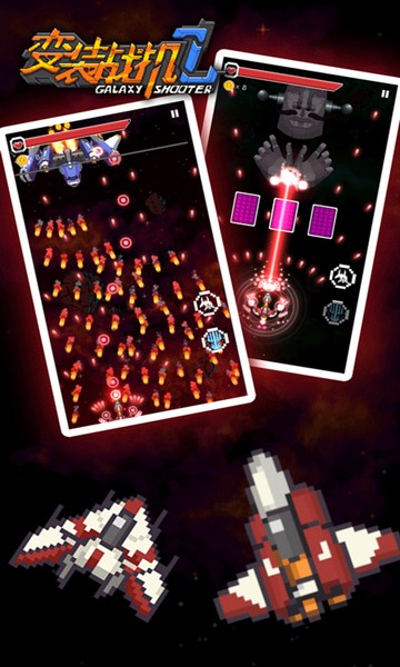 变装战机2银河射击是一款非常有意思的2D复古飞行射击游戏,该游戏的画面非常精致,采用像素画风,在这里玩家可以控制战机进行战斗,需要通过各种枪林弹雨,摧毁敌方的防线并面临最终的各种各样的关底BOSS,然后通过自己的技巧来击败BOSS获得胜利。此外游戏还有着多种不同类型的战斗机供玩家进行操作使用,感兴趣的小伙伴快来下载游玩吧!