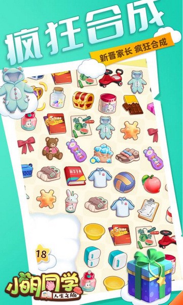 超有趣的休闲合成游戏。游戏中玩家通过合成各个物品来获取抚养宝宝的道具,从奶瓶,奶粉、衣服到玩具任你合成,解锁新的房间,一步步抚养你的宝宝吧。
