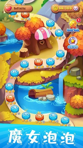 我觉得这个游戏特别适合在闲暇时间玩,既能锻炼手眼协调能力,又能带来成就感。虽然有些关卡可能有点难度,但只要多尝试就能通关。如果你喜欢消除类游戏,《魔女泡泡》绝对值得一试!