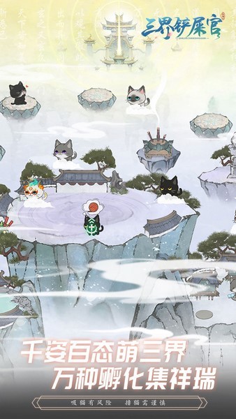 三界铲屎官是一款养猫咪为主要玩法的养成类游戏,但有趣的是它还把神话结合了起来,这里的神仙也被可爱的猫咪所征服,现在我们要在仙界开始养猫咪了。这里的场景也都是非常还原大家心中的仙界的,而且这里的猫猫都在腾云驾雾,为你带来不一样的萌点。此外游戏中的猫猫品种也是超级多样的,此外还有很多新奇的玩法可以体验。