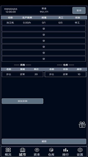 人口:影响产品的销售速度,游戏设定人口到达一定数量,销售价格可以翻倍卖出,但是销售速度缓慢