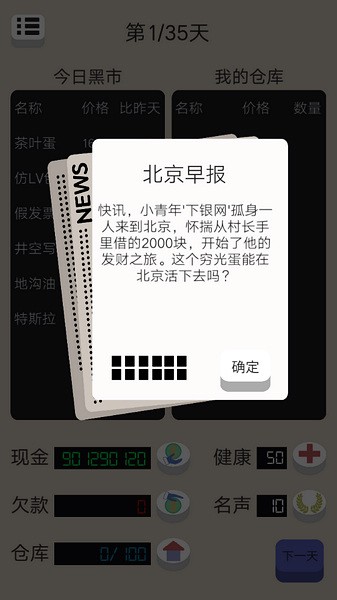 《北京浮生记》无限现金版是一款挺有意思的经营养成手游。游戏里的你是个北漂青年,一开始穷困潦倒,但因为解锁了无限资金和清除了所有欠债,所以不用担心没钱的问题了。你可以通过在市场上买卖商品赚取差价,学习提升自己的业务能力,甚至还能通过做慈善来提高名声。游戏里有四十天的时间限制,每一天都充满了挑战,比如突发事件会影响你的健康、名声和财富。我觉得这个游戏设计得很真实,虽然玩的是虚拟人生,但其实也能反映出现实社会中的一些生存法则,挺有意思的。不过提醒一点,游戏里的贷款要谨慎使用,利息可是每天都在涨的哦!