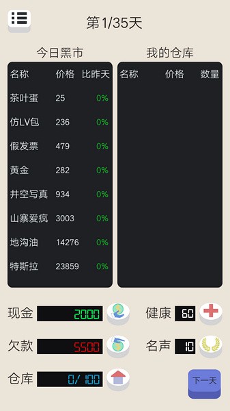对于游戏的玩法主要还是遵循低买高卖的过程,期间昨日跌红价格的商品,明日基本上都有一定的涨幅,但例如假发票的大批量贩卖会让你的名声受损,所以在尽可能的情况下