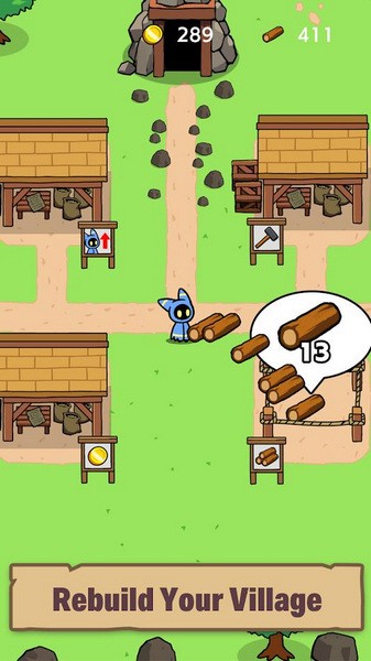 2、然后通过在屏幕上滑动来操控角色寻找敌人,靠近即可发起攻击,击杀后可以获得金币和木材