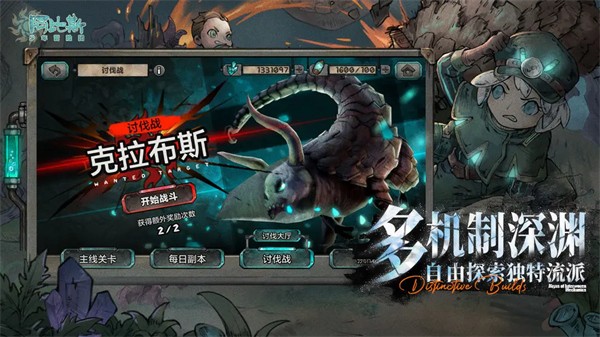 游戏有六种职业,每个职业都有独特的技能和战斗风格,可以根据自己的喜好来搭配不同的战技。画面是手绘画风,看起来特别魔幻绮丽,战斗特效也很炫酷,深渊里的怪物设计得很神秘,让人有种身临其境的感觉。