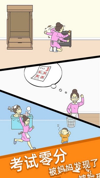 在这款游戏里面,每一个玩家需要帮助游戏里面的主角瞒天过海,当知道自己的考试成绩时,帮助自己隐藏自己的成绩,不让妈妈找到试卷就是我们的任务,充分利用场景中的各种道具,完全开放自己的思维,诸多脑洞大开的奇葩剧情令人啼笑皆非,感兴趣的玩家快来下载帮小明藏试卷玩一玩吧!