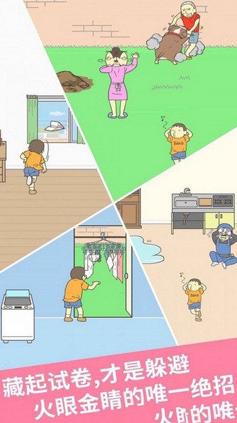 这款游戏不仅画风可爱,还充满了令人捧腹的挑战。在游戏中,我扮演的角色是帮助小明藏匿那张零分试卷,以防妈妈发现后引发一场家庭风波。每个关卡都设计得非常巧妙,需要玩家充分调动想象力,利用房间内的各种道具,如书本、枕头甚至鱼缸,来隐藏试卷。这种脑洞大开的设计让每一步都充满乐趣。