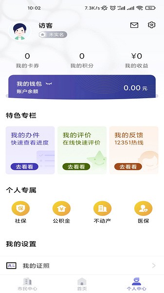 涵盖了用户所有个人信息及业务,拥有电子签名、办件、网办记录、公积金等相关功能的查询,并设置收件地址、服务评价、相关咨询等功能,收入、医保、社保等相关功能正在建设当中。