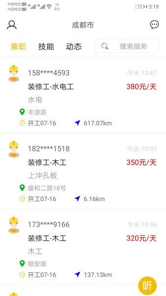 我特别喜欢它的定位功能,直接显示附近工地的位置,省得东奔西跑浪费时间。而且可以随时沟通,甚至可以直接打电话联系招工方,效率太高了!如果你是做工程的老板,也能在这里发布招聘信息,招到合适的工人,解决用工荒的问题。