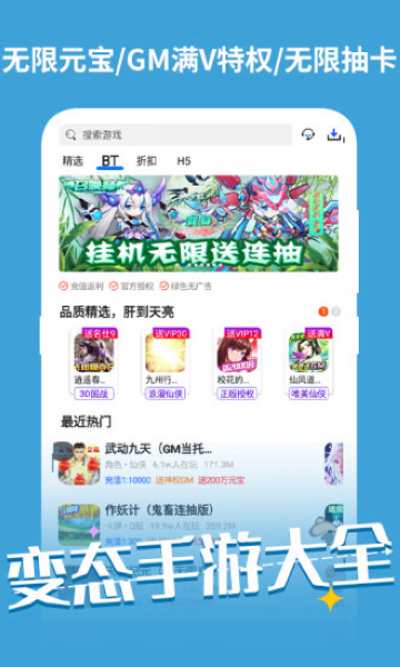 1、最全BT手游,满级VIP海量钻石元宝上线即送,更享有全网最高返利。