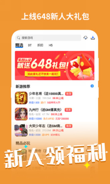 2、注册送首充,充值自动打折,折上再送代金券,从此手游无氪金。