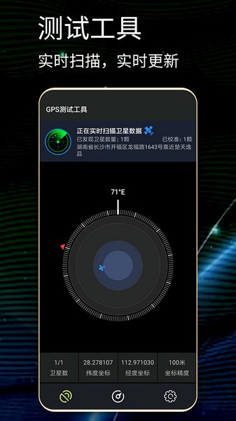 gps测试仪中文版是一款简单好用的gps系统测试工具。这款软件可以帮助用户检测不同gps系统是否正常运作,支持多项功能检测,各项检测数据会精准地显示在软件上。此外,当检测到问题时会告知哪里出现了问题,帮助维修人员了解问题所在位置,让维修人员更好地进行修复。同时,gps测试仪中文版软件也可充当普通的gps使用。