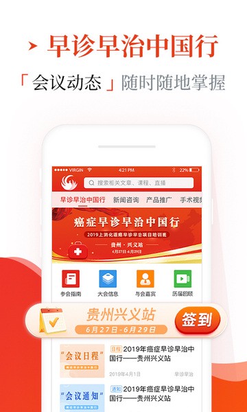1、早诊早治中国行:提供癌症早诊早治中国行活动相关信息和直播及精彩回放