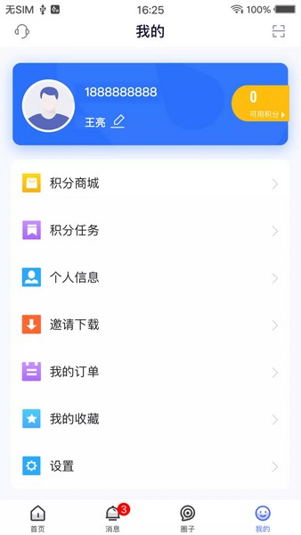 2、我的页面,用户可查看积分商城、积分任务、个人信息、课程等,下拉找到设置;
