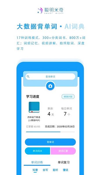 1、打开聪明米奇app,点击软件左下方【单词学习】功能。