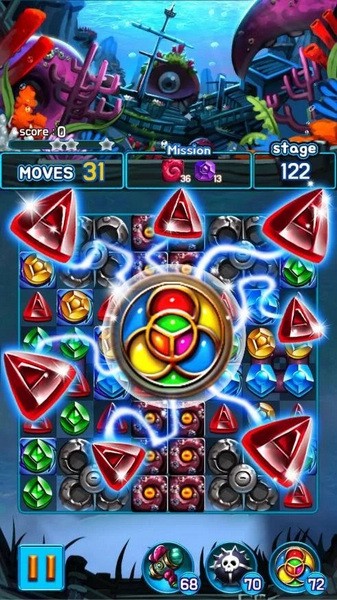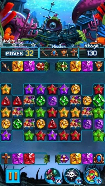 珠宝海妖破解版一款宝石题材类消除游戏。在游戏中,玩家需要利用位置互换将相同颜色的宝石消除掉,玩法和消消乐一样。游戏背景设定在海底,玩家将在海底进行冒险闯关,不断的进行消除闯关来寻找传说中的海洋怪物,一步一步探索海底的神秘感。游戏中提供丰富的道具给玩家使用,玩家在突破关卡的同时也能享受到游戏的无限乐趣,每次都有不一样的感觉。此版本经过破解提供无限金币,免广告。游戏亮点