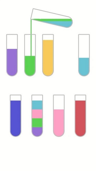 游戏的画面设计得很漂亮,各种颜色的液体在试管里流动的样子看起来特别真实。特别是当你成功地把所有同色液体集中到一个试管里的时候,那种成就感真的挺强的。不过有时候面对复杂的排列组合,也会忍不住想骂人,尤其是当自己试了很多次都没成功的时候。