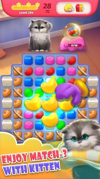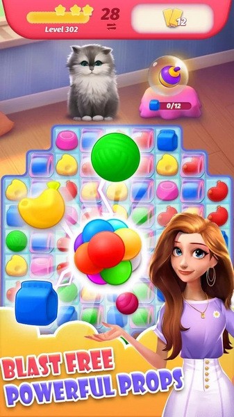 超级可爱的缅因小猫Chris,超高质量的三消爆炸效果,以及角色剧情丰富的动画表现!