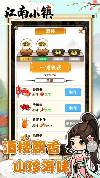 江南小镇游戏是一款别具风情的模拟经营手游,如同一幅唯美画卷,在游戏世界中诠释着恬静的田园风光。于美不言而喻的景色间,你即将拥有一片属于自己的良田小镇。在这里,你将扮演着经营者的角色,经营着酒楼、招待四海宾客。在指尖的触碰下,种田的乐趣尽在掌握,渔具的嘎然作响,鱼粮丰盈,仙鹤飞礼而至。原来农田生活,也可如此悠然自得。