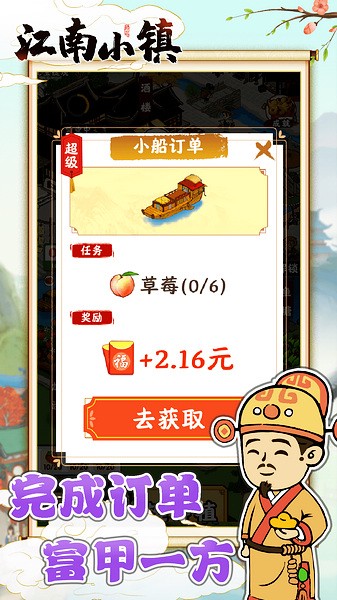 江南小镇是一款非常有趣的模拟经营手游,游戏里你可以体验到种田、养殖、开酒楼等各种玩法。画面很美,像是一个烟雨朦胧的江南水乡,让人感觉特别放松。游戏操作简单,轻轻一点就能完成种地、捕鱼这些任务,还能通过种植和养殖赚取现金红包。离线也能获得收益,上线后记得领取哦!
