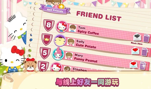 游戏中还有许多有趣的员工和顾客角色,他们都有独特的性格和故事,增加了游戏的趣味性。总体来说,这是一款适合休闲玩家的游戏,特别适合喜欢HelloKitty和可爱风格的玩家。如果你对经营咖啡厅感兴趣,这款游戏可能会让你欲罢不能!