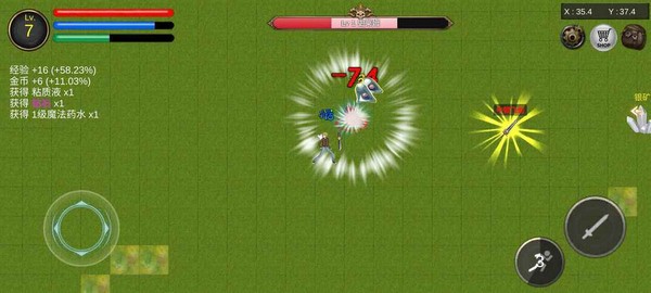 5、在降龙猎手前进过程中你会遇到缠人的史莱姆,不断点击右侧的攻击键就可以击败他们;