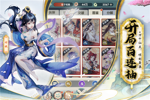 在花戎游戏中,每天都可进行十连抽卡,为玩家提供超强福利,让你每天都能体验到抽卡的乐趣!无需担心抽不到喜欢的角色问题,因为每天都有机会获得。在修仙的道路上,你将结识各种各样的神仙妖怪,与他们一起冒险、战斗、成长。无论是与道家的真仙互动,还是与魔教妖怪大战,每一次的抽卡都将成为你修仙路上的助力!
