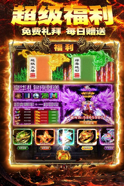 ◆◆◆百倍爆率◆◆◆ 福利地图免费进入,更有幸运药水,每日对应BOSS必爆指定最高阶装备,神装嗖嗖穿满身!