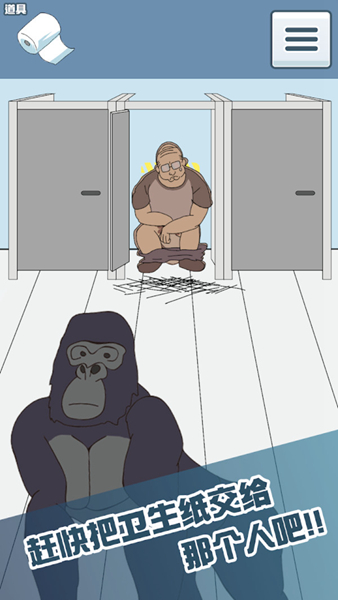 这个游戏叫《卫生纸没啦》,听起来就有点搞笑对吧?玩法很简单,就是帮那些上厕所没纸的人送纸,但过程可不简单。游戏里有很多让人意想不到的关卡设计,有时候你需要仔细观察每一个角落才能过关。比如有时候要开门、捡道具,甚至还要和大猩猩打交道,真是脑洞大开。
