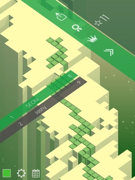 无限悔棋功能:游戏十分人性化地提供了无限后悔的功能,点击画面右上角的“撤销”按钮,方块就会倒退一步,如果长按按钮,就会一步步滚回到起点。