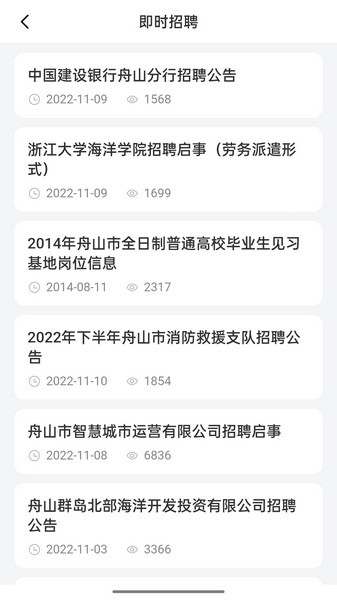 3、海量招聘信息,汇聚了整个舟山省区域的求职招聘信息