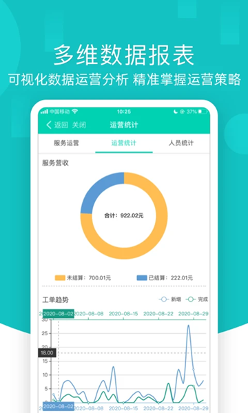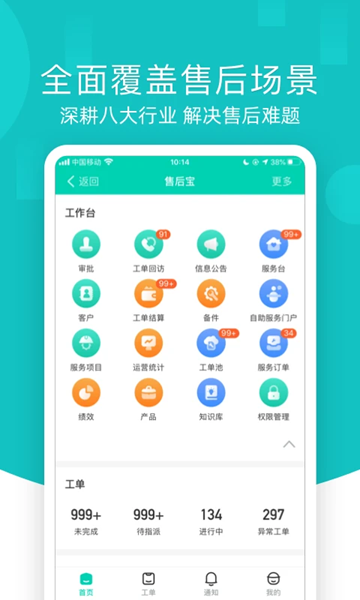 -- 工单管理:工单全流程在线可视化,实现服务工单闭环管理,实现工单在线审核结算与客户的自动回访。