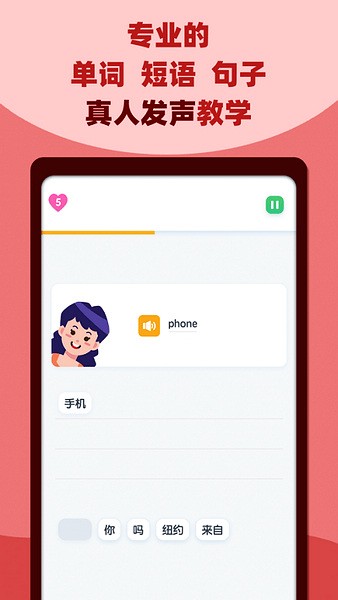 邻国说app是一款超级棒的英语学习软件,我最近也在用,真的觉得挺不错的!它通过游戏闯关的方式教英语,特别有趣,完全不觉得枯燥。学单词、短语和句子的时候还能听到真人发音,感觉就像在跟外国人交流一样,挺有帮助的。