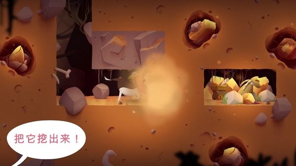 二是有些石头也会掉下来砸死狗狗,所以挖石头底下的沙块务必迅速,石头掉出来之后会作为道具被使用,比如用来垫脚,又或者是变成障碍堵塞通道,具体情况具体分析啦,也许后面还有别的用处。
