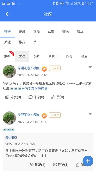 万方数据app是一款有着海量的科研学术资料的软件,用户可以在这里直接搜索需要的内容,同时还有高级搜索功能可以提供更精准的搜索服务,且在结果页面还可以进行排序筛选,甚至还能在结果页面中继续进行搜索来锁定目标内容。此外这里也是一个学术讨论的社区,有完善的社交系统,可以关注、评论、点赞等等。