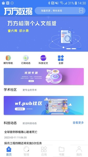 万方数据app是一款超级强大的学术资源软件,里面海量的科研资料随时可以搜索,而且还能通过高级功能精准找到想要的内容。它的界面设计也很友好,首页能追踪学术热点,社区里还有讨论和互动的功能,感觉挺方便的。我用过类似的产品,但这个app的搜索功能确实很强大,特别是结果页面还能继续搜索,这一点特别实用。