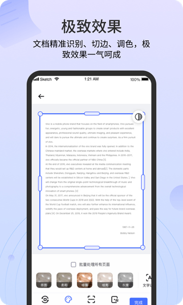 3、文档切边,任何文档都能自动精准识别文档边缘;