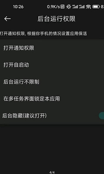 7、打开后台隐藏和微信音视频开关。