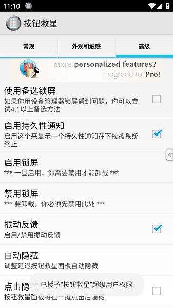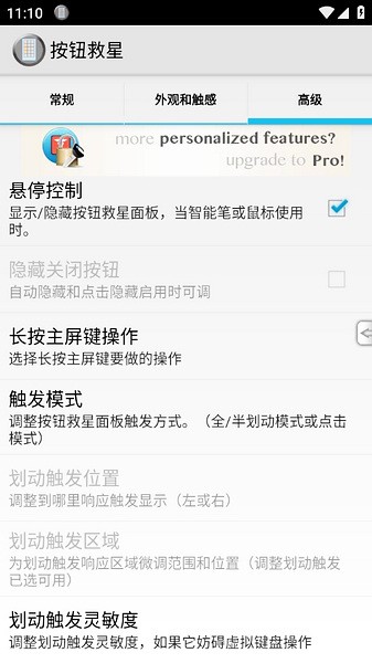 按键救星专业版是一款十分专业且好用的手机按键app,软件的功能十分强大,通过该软件用户们可以轻松的设置虚拟按钮,并且大家可以根据自己的需要来代替各种功能,包括返回键、搜索键等等,并且除了能够模拟主页、菜单、返回、搜索四个实体按键外,同时软件还支持手机锁屏功能,让大家可以释放物理按键,完全不使用按键来进行使用手机,也能很好的减少实体按键的磨损。