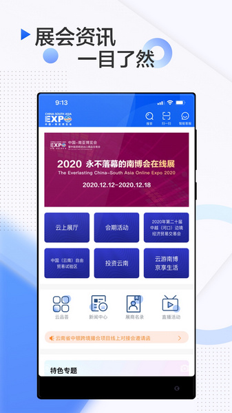 南博会APP以“新会展、新空间、新文化、新技术”为理念,南博会软件助力南博会进行数字化、智能化升级,打造永不落幕的南博会在线展,南博会app推动南博会线上线下融合发展。