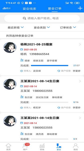 宴会信息集中管理,避免遗漏