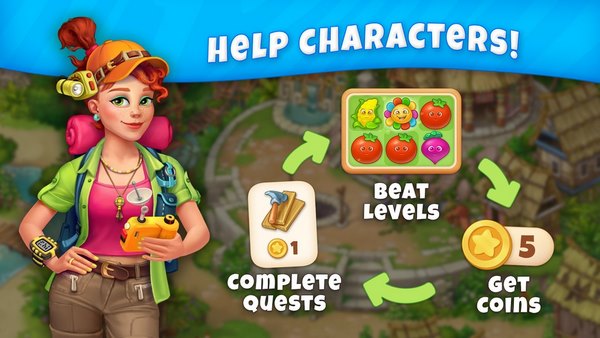 失落岛屿上的好村民喜欢宝石,水晶,热带美食,海盗宝藏的神秘故事以及连续玩3场游戏。他们一起精挑细选多汁的蔬菜!但是一场灾难袭击了他们的家!热带森林已经长满了岛上的村庄,成为了真正的麻烦!剩下的房子都是碎石!