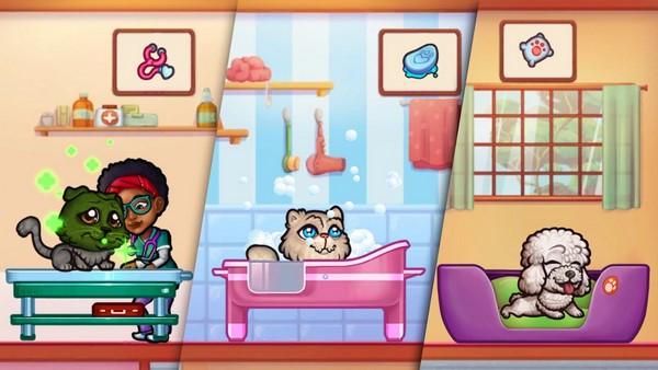 在您的兽医诊所为宠物主人服务并照顾他们,玩得开心!有宠物保健、洗澡、美容等任务。您还可以与狗、猫、兔子、仓鼠和许多虚拟动物一起玩游戏。管理您的宠物店业务并在城市获得更多客户!